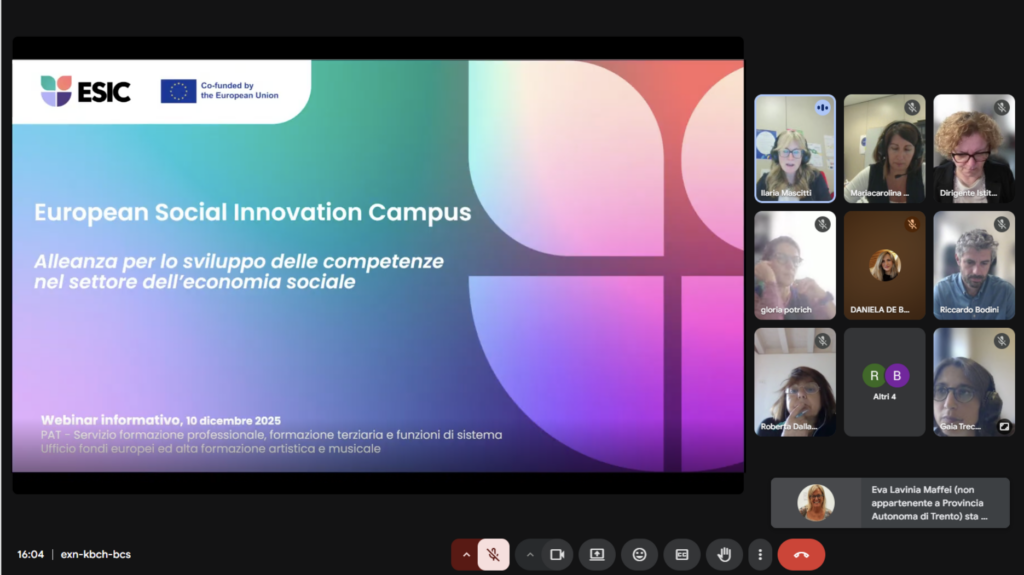 TRENTO – The ESIC project has officially launched its educational outreach in Trentino. Recently, the Provincia autonoma di Trento (PAT) concluded a series of three high-impact introductory webinars designed to raise awareness of the project and guide participants through the definition of the future training pathways and professional development opportunities.