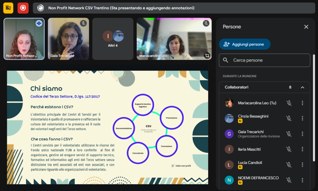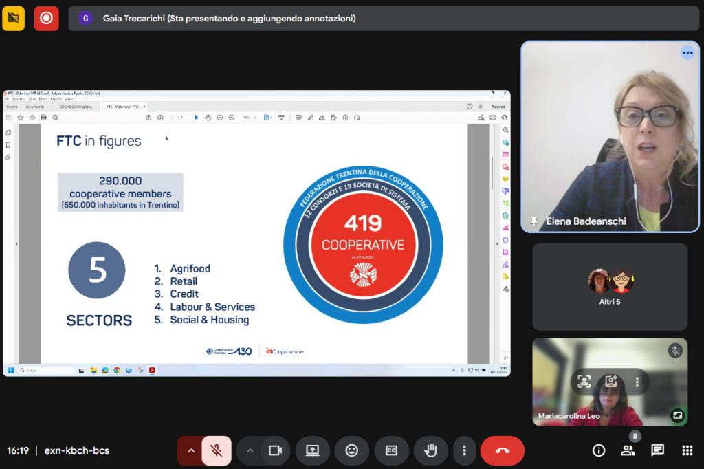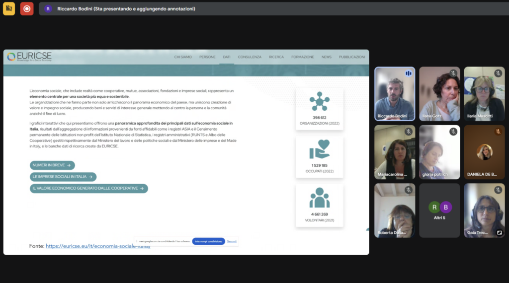 The webinars were not a solo effort; they not only involved two other project partners, EURICSE and FTCoop, but also saw the participation of CSV Trentino, one local organisation that deals with volunteering and training for volunteers.